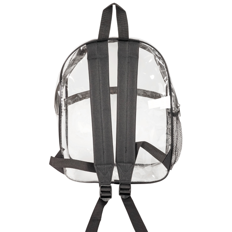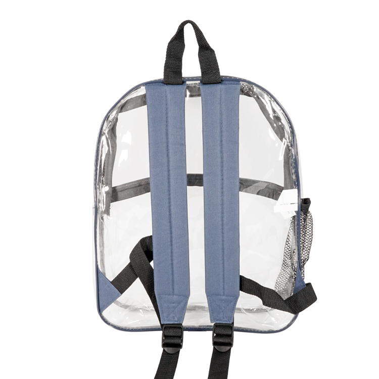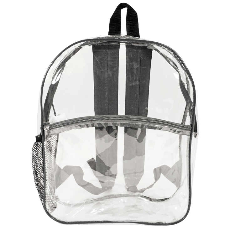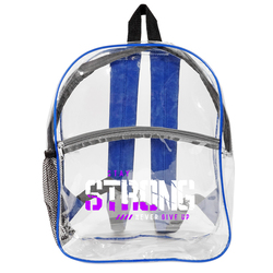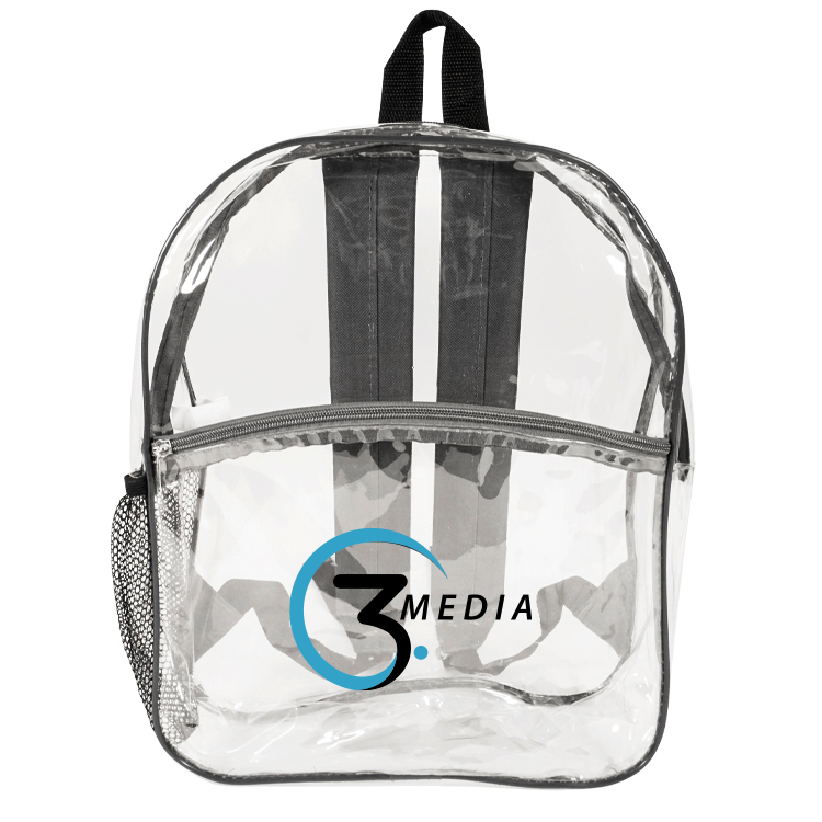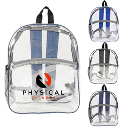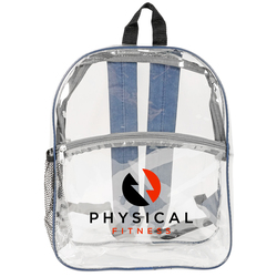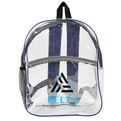 Elevate convenience with our Rockaway Clear Backpack. Thicker 0.3mm PVC for durability, phthalates-free for eco-consciousness. Spacious design (12"W x 15"H x 4"G) keeps essentials organized. Features large front zipper pocket, padded adjustable shoulder straps, side mesh pocket. Stylish colors like Clear/Royal Blue, Clear/Black, Clear/Navy, or Clear/Gray. Personalize with logo (7"W x 5"H) or (6"W x 3"H) above the pocket. Reliable and stylish, perfect for any adventure.