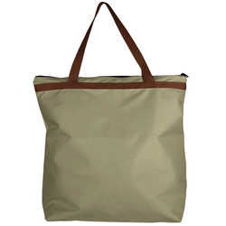 This bag is made of solid colored denier PVC backed polyester material, has 28" handles, and measures 15.5"H x 22"W x 6"D.