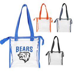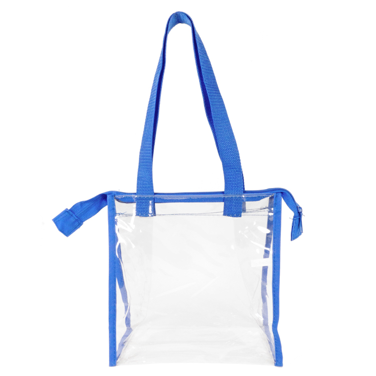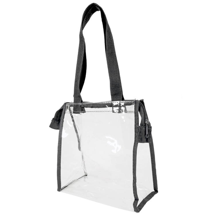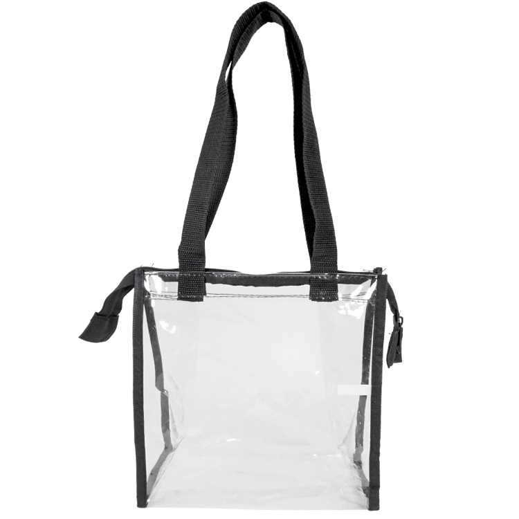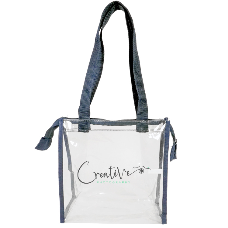Upgrade your lunchtime routine with our Moonstone Clear Lunch Tote. Compact and stylish, featuring a top zipper closure for security. Two 20" handles ensure easy carrying. Crafted from durable 0.3MM clear PVC with a sleek design. Measures 9"W x 9.5"H x 4.5"G, perfect for lunch essentials. Available in Black, Royal, Navy, or Red trim colors with imprint options on front and back (6"W x 6"H) for personalized style.